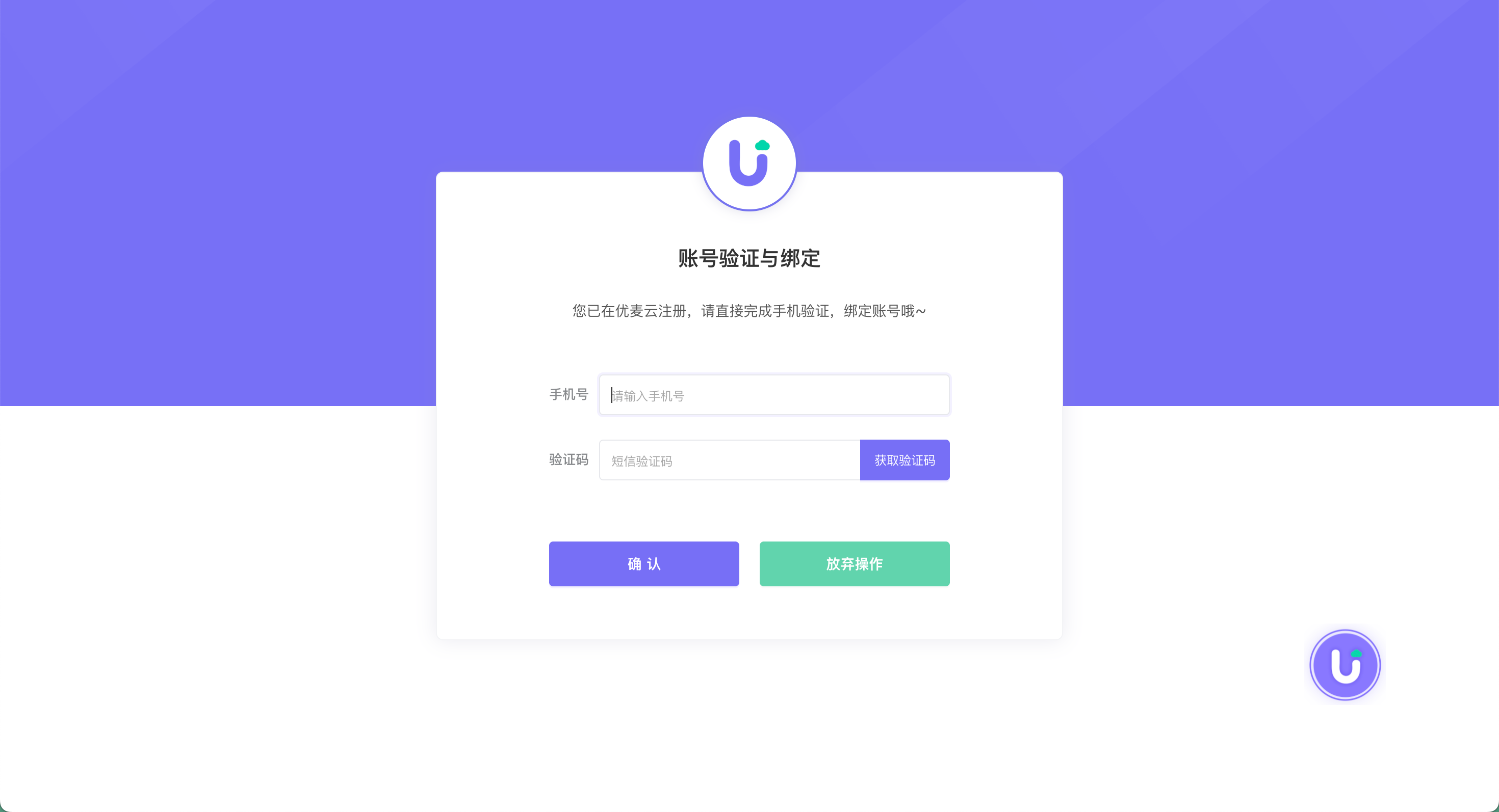 需要绑定的优麦云账号和登录的卖家精灵账号,均为主账号且手机号相同,可直接点击【获取验证码】,之后输入验证码,点击【确认】,完成账号绑定。